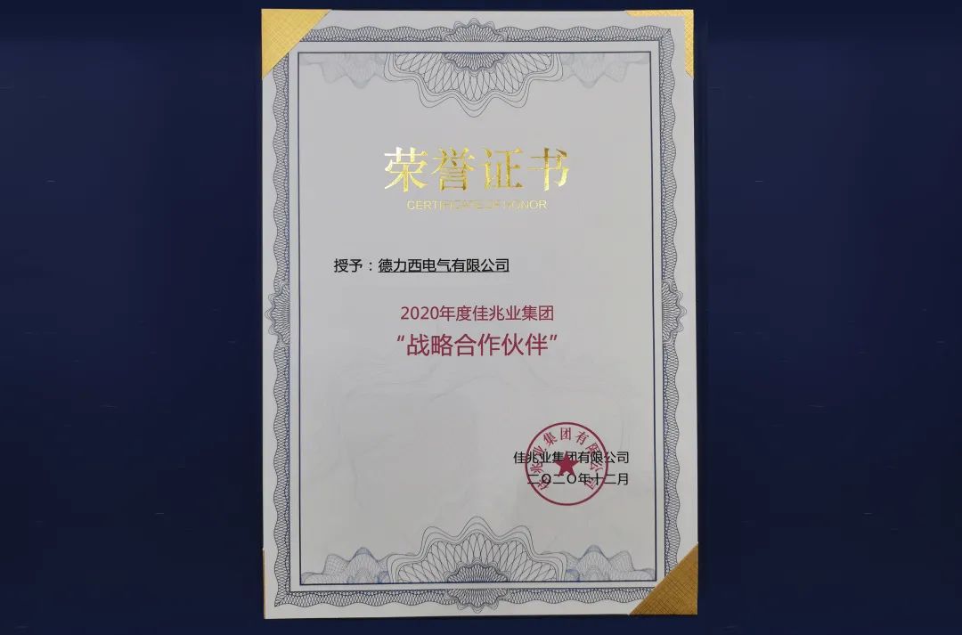 自今年5月独家携手佳兆业集团,德力西电气凭借具有行业竞争力的更高品质和更高性价比的产品解决方案,秉承客户第一的理念,全方位满足客户需求,帮助客户优本增效,为佳兆业提供包括优质低压配电产品、终端配电产品,以及面板开关、插座等在内的智能家居配套产品,助力客户创造舒适、美观、安全、智能的居家用电环境,以过硬的全行业解决方案与产品服务推进建筑行业绿色发展。此次荣膺“2020年度佳兆业集团战略合作伙伴”,不仅是对德力西电气优质的产品品质、专业的客户服务以及高效的解决方案的高度置评和认可,更是对德力西电气多年来坚持自主创新品牌之路的充分肯定。