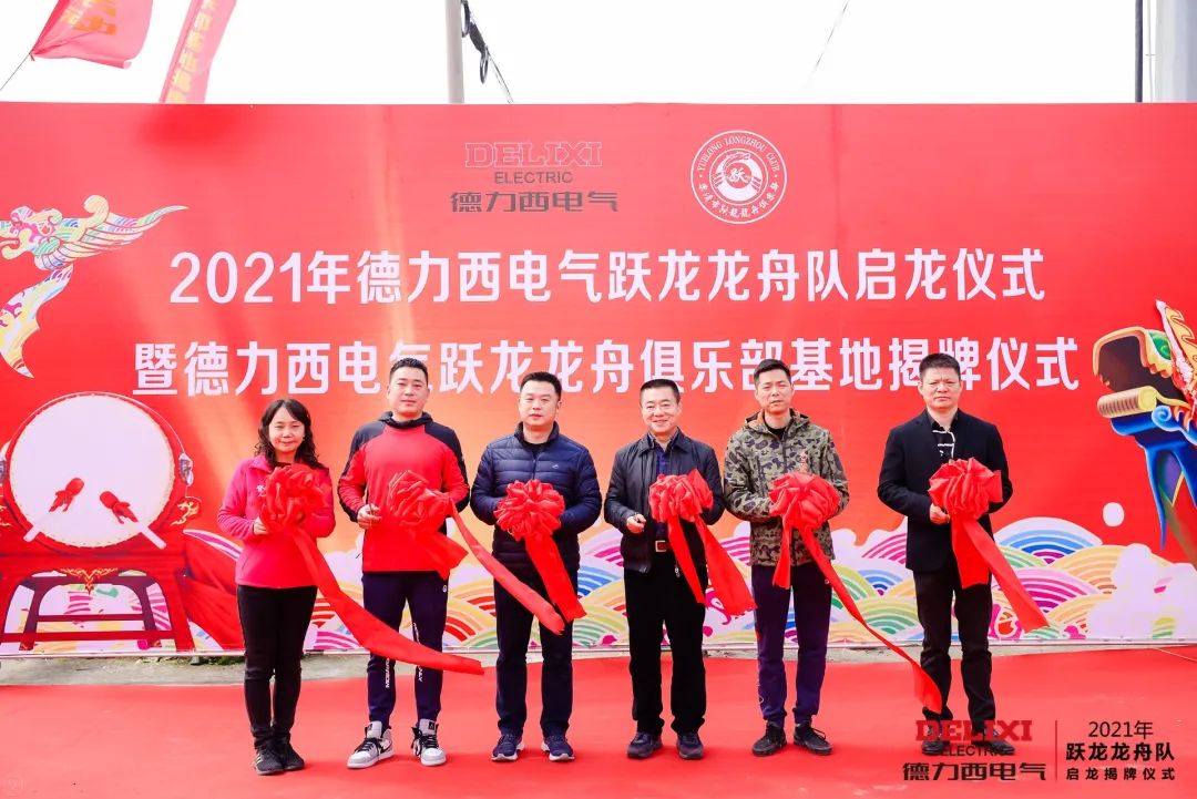近日,德力西电气跃龙龙舟俱乐部基地正式举行揭牌仪式,温州市龙舟协会主席亓斌、温州市社会体育指导主任项君伟、乐清市龙舟协会会长吴阿将、德力西电气首席文化官胡晓春等人共同出席并剪彩揭幕,为德力西电气跃龙龙舟队新一年的征战之旅加油助力。