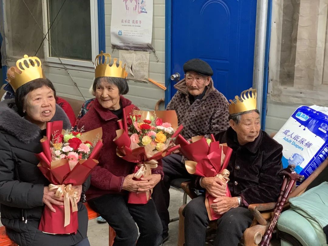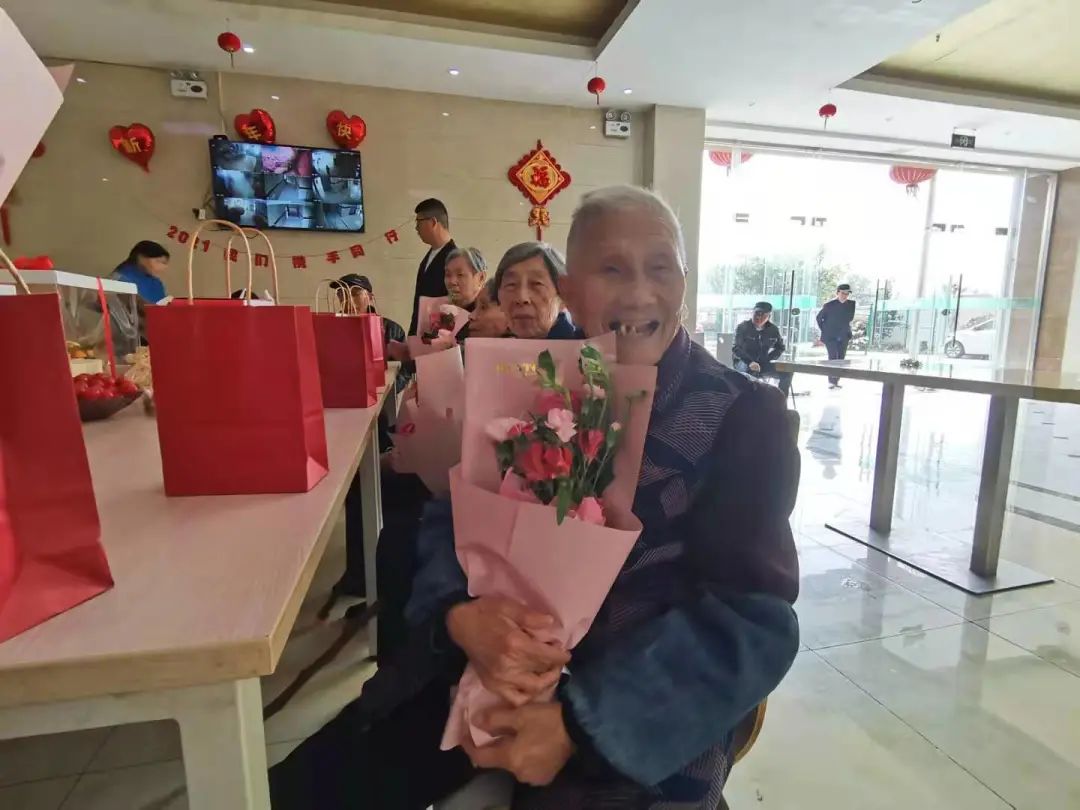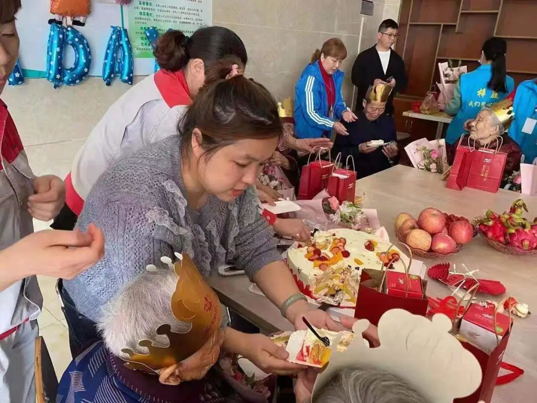 在本次活动中,志愿者们为各地老人们准备了丰盛的礼物,有鲜花,有蛋糕,有长寿面...生日会活动现场热闹又欢乐,志愿者与老人们一起聊天、唱歌、做游戏,惹得生日趴的主角们都开心得合不拢嘴了。