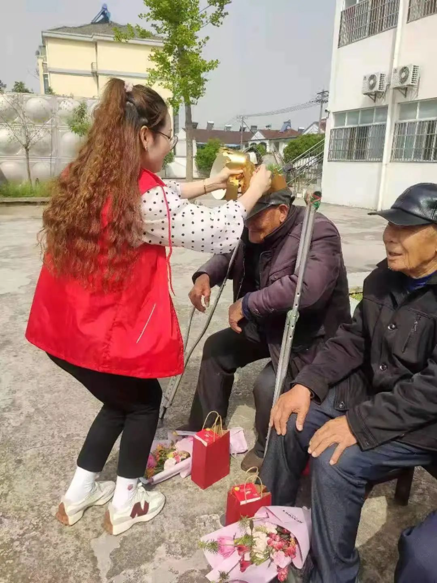 浙江柳市清雁养老院的老人们有的扛过枪、上过战场,有的是光荣离休的老干部。活动最后,一位当过20年兵,党龄有56年之久的阿婆代表发言,感谢德家志愿者,还为我们送上了祝福语:太阳为你们放红光,花儿为你们齐绽放,鸟儿为你们把歌唱,祝志愿者们全家幸福,身体健康!