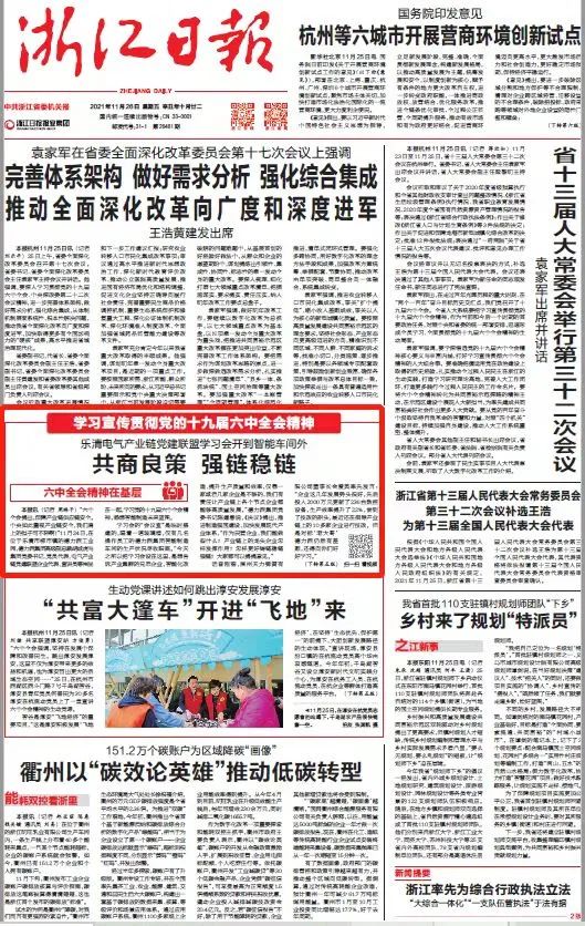 今天出版的《浙江日报》,对此进行了报道: