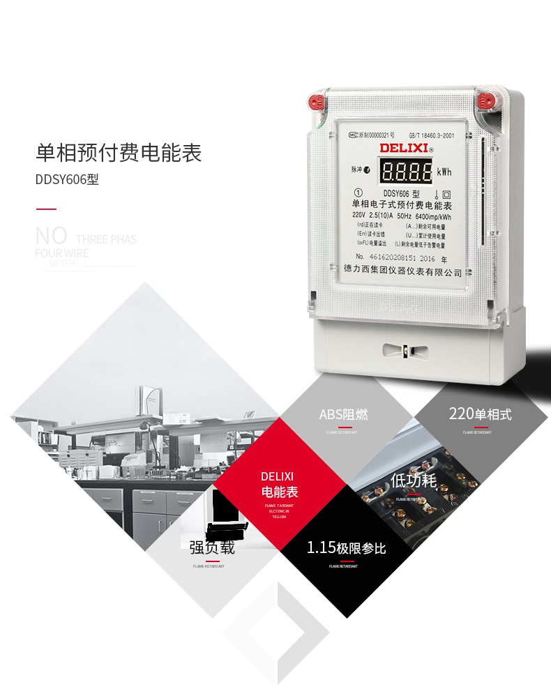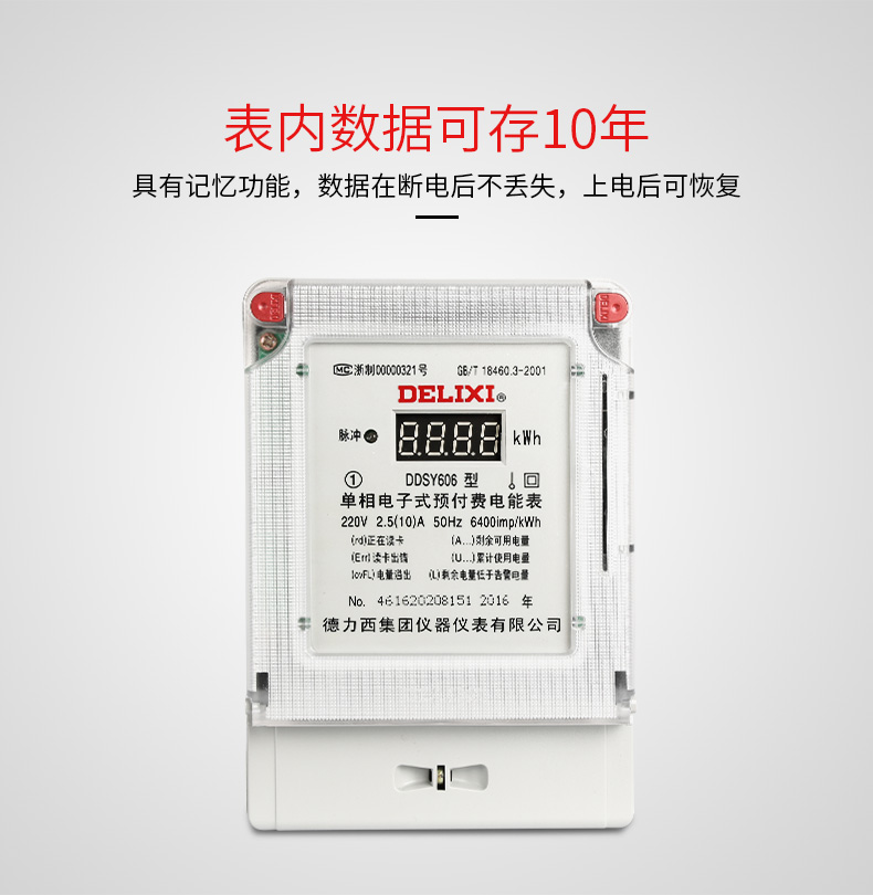 德力西单相预付费电表 DDSY606预付费单相电线 电流可选6A互感式/20A/40A/60A 需485接口的联系客服 订单产品