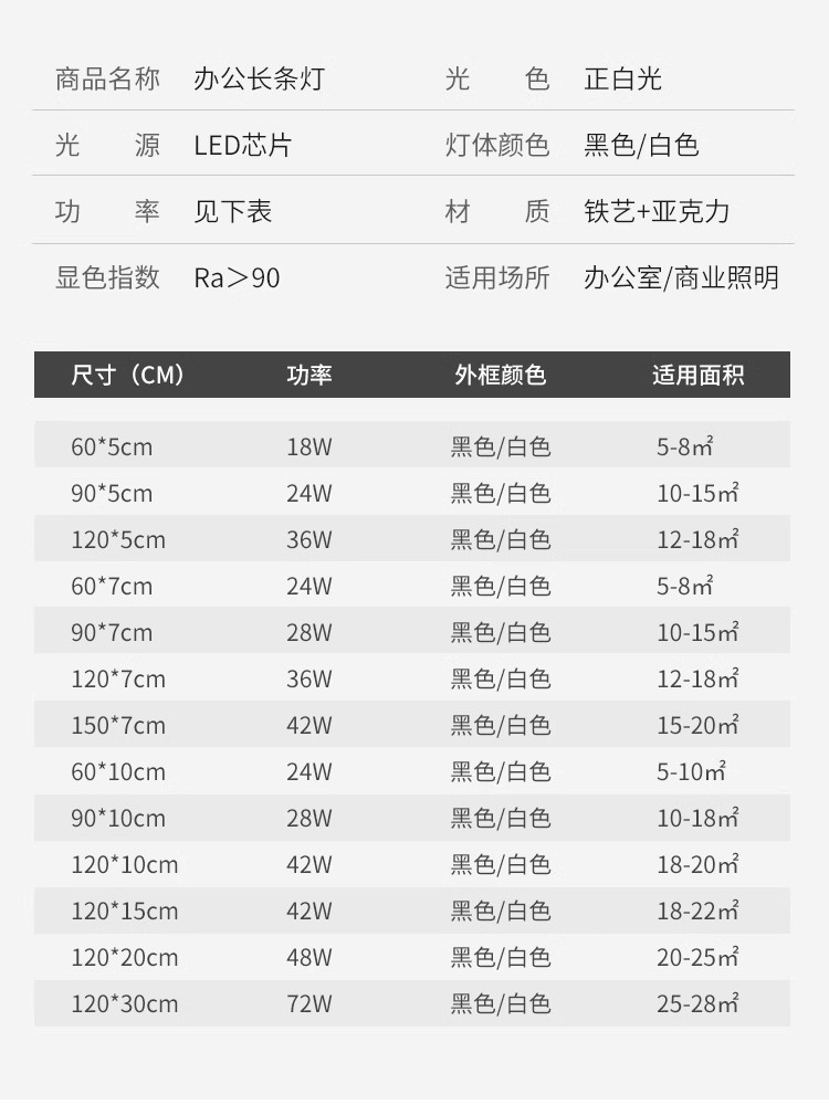 办公灯led长条灯方通吊顶专用灯超市造型灯健身房条形灯商用吊灯